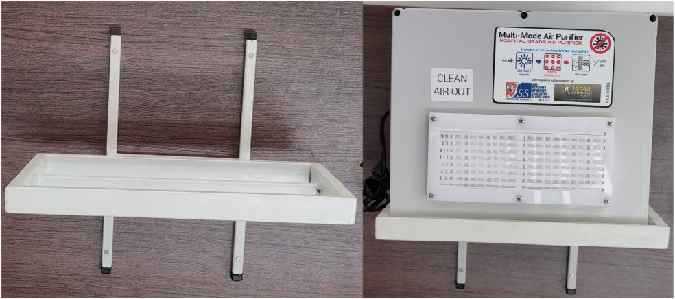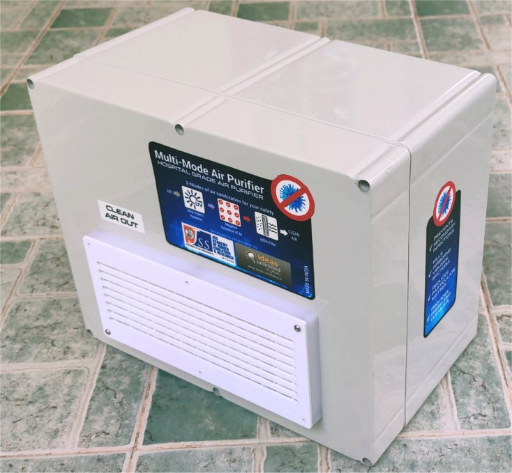 The product was developed at the peak of Covid lockdown in May 2020 targetting Covid Wards to prevent secondary infection to front line healthcare workers, as this product can neutralize airborne viruses and microbes. A live virus based testing was conducted to validate the design of the Multi-Mode Air Purifier at a Virology lab of JSS Pharma College in Udhagamandalam (Ooty). The tests involved nebulisation of active (live) virus in a Bio safety chamber which contained a functional Multi-Mode Air Purifier. The Air Purifier has performed very well in eliminating the high virus load applied in reasonable time frame.
