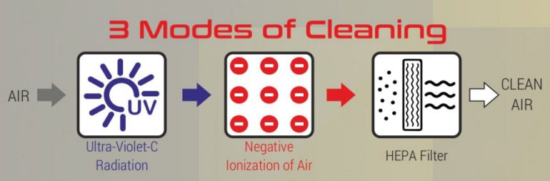 Multiple Modes of Effective Air Sanitization with UV, Ionization and HEPA Filter