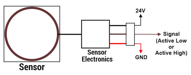 the first pin supplies 24V power to the sensor, second pin is sensor signal its either active low or active high, and third pin is ground .