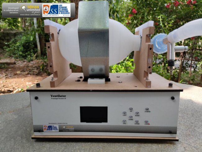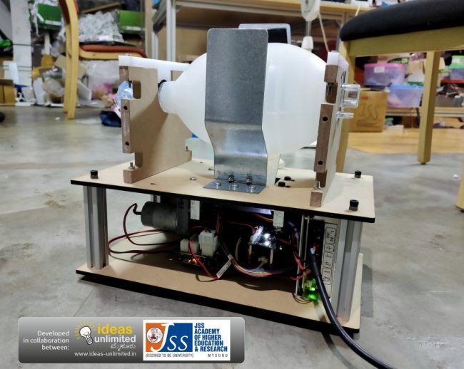 Low Cost Ambu bag based Ventilator for treatement in Early stages. This prototype also incorporated a Patented Technology by Dr. Srinivasa Murthy (JSS-AHER) called SIMPAPP which would maintain minimal PEEP even during exhalation by patient, and was better than other low cost ventilators made by reputed brands.